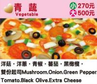 洋菇、洋蔥、青椒、蕃茄、黑橄欖、雙份起司