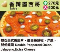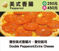 雙份美式香腸片、洋菇、青椒、蕃茄、雙份起司