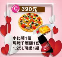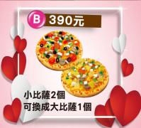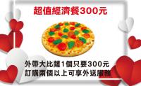 加100元再送小比薩一個或兩個小比薩可換成一個大比薩。